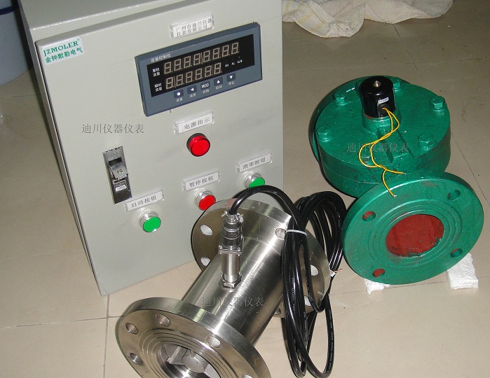流量傳(chuán)感器 (選擇(zé)對應的(de)口徑和(hé)流量控(kòng)制流量(liàng)範圍 )+泵或(huo)電磁閥(fa)門+定量(liàng)控制櫃(guì)